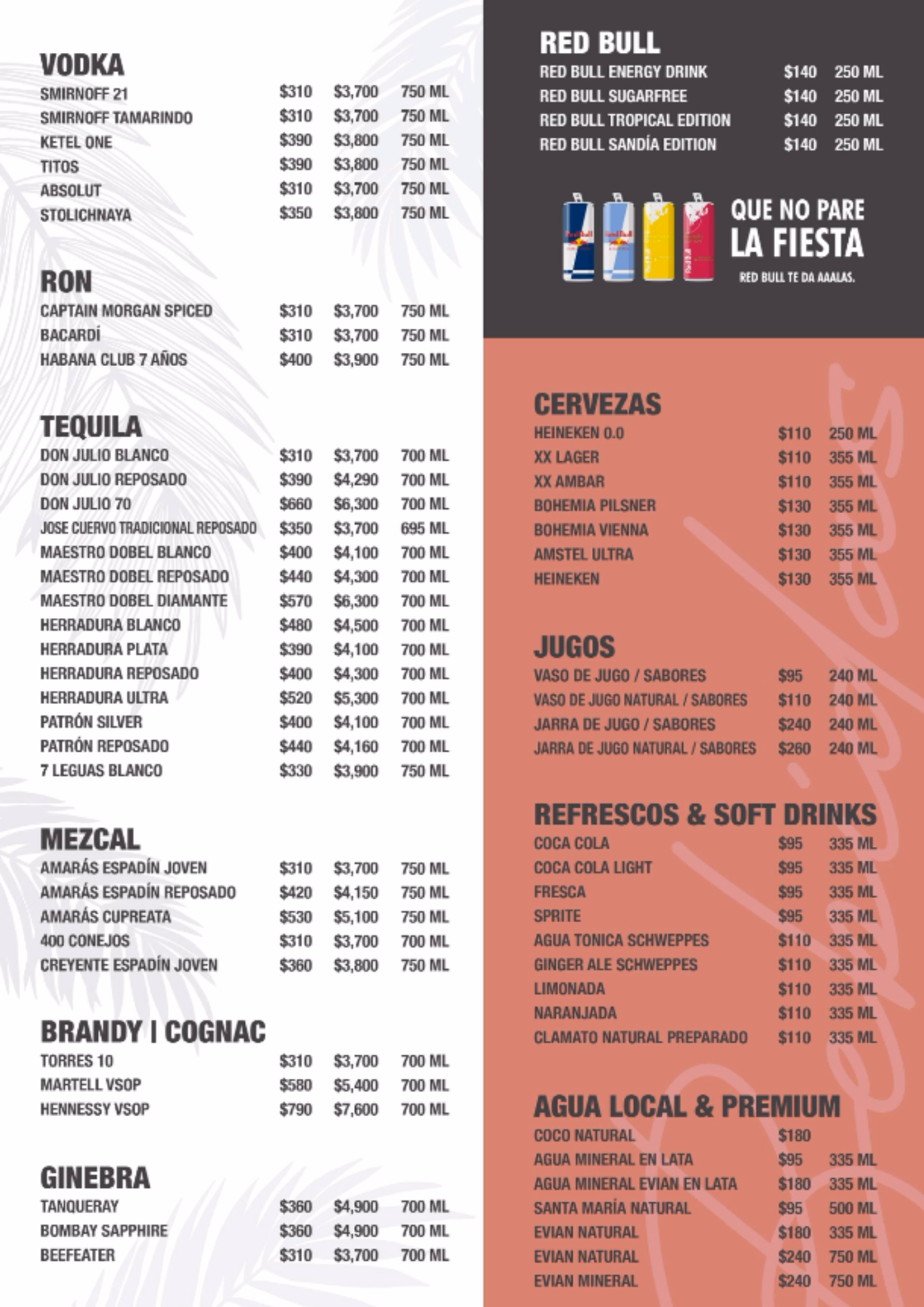 • At the venue: Mexican Pesos, US Dollars, Visa, Mastercard, American Express