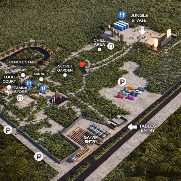 Zamna Festival is located slightly outside of Tulum town, set within the jungle. Due to its location, planning transportation in advance is recommended.