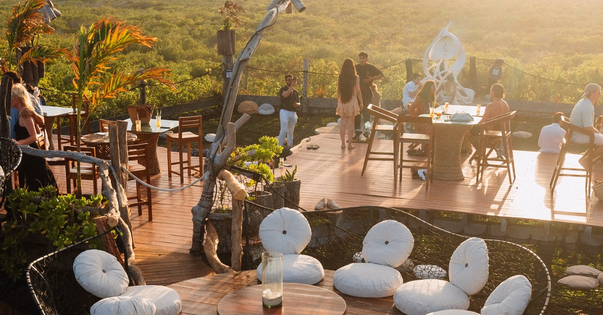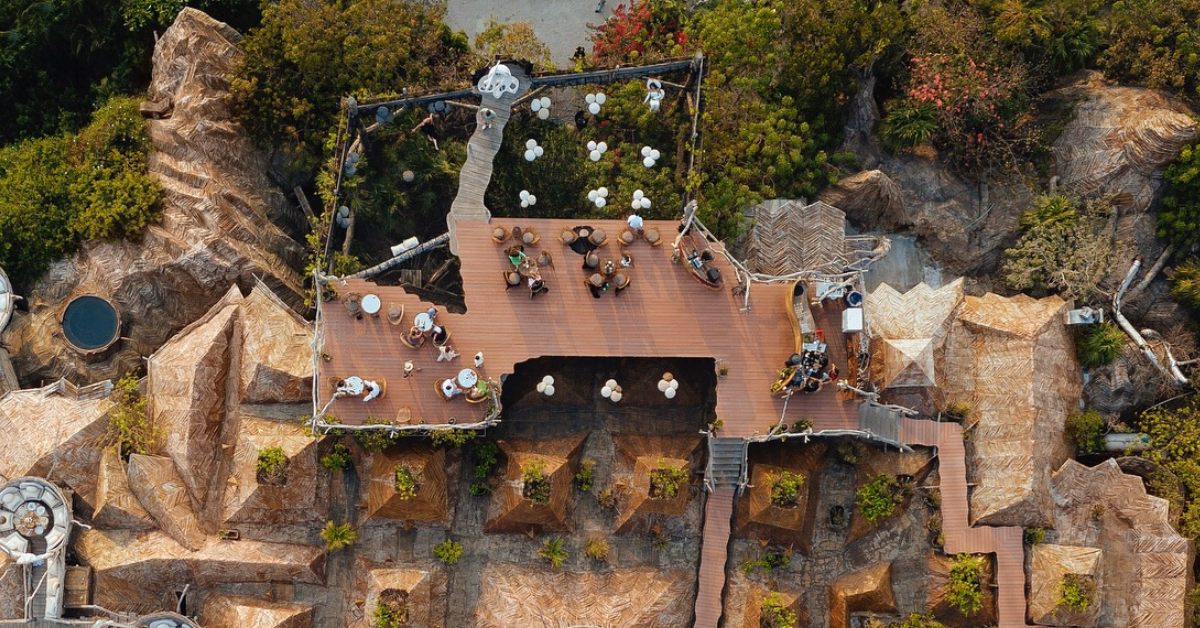 Due to the unique architecture of the space, which includes suspended nets and elevated platforms, high heels are not recommended. Comfortable footwear such as sandals or flats is highly suggested. Guests wearing skirts or dresses should also keep in mind that some areas feature open net seating, so choosing comfortable attire is recommended.